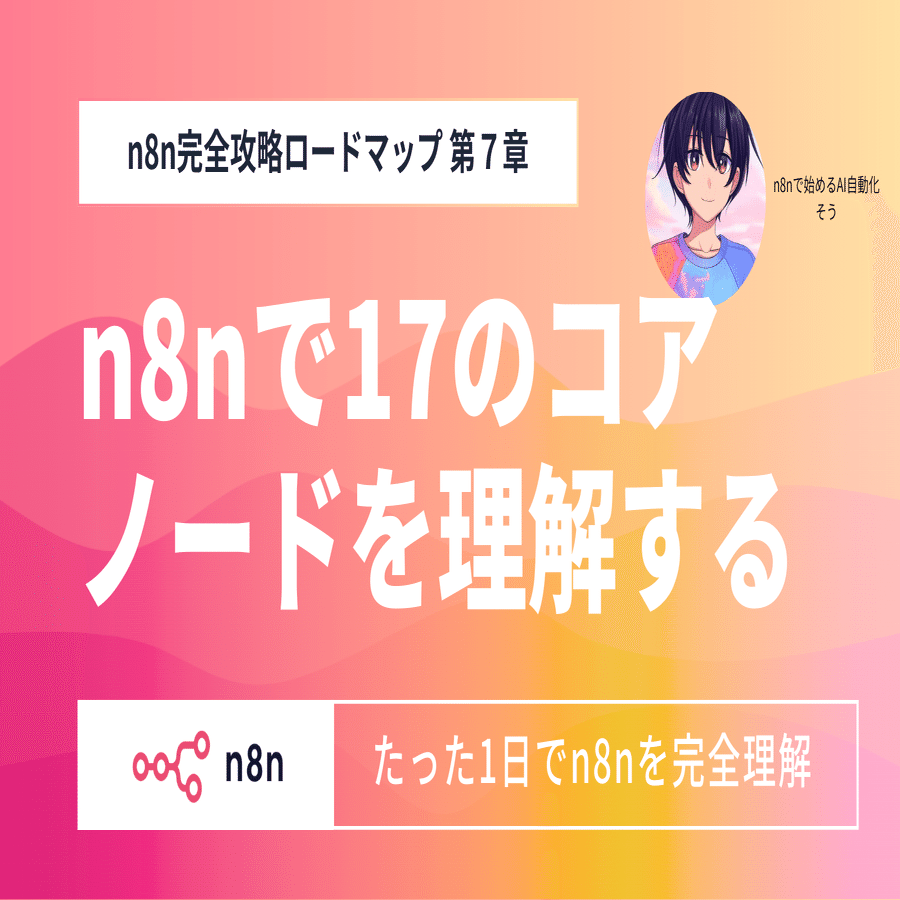17のコアノードを理解すれば、n8nで実現できる自動化の90%以上をカバーできます。