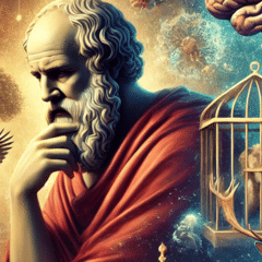 プラトンは、洞窟の中で鎖に繋がれた囚人たちが、壁に映る影だけを見て育つ状況を想像します。