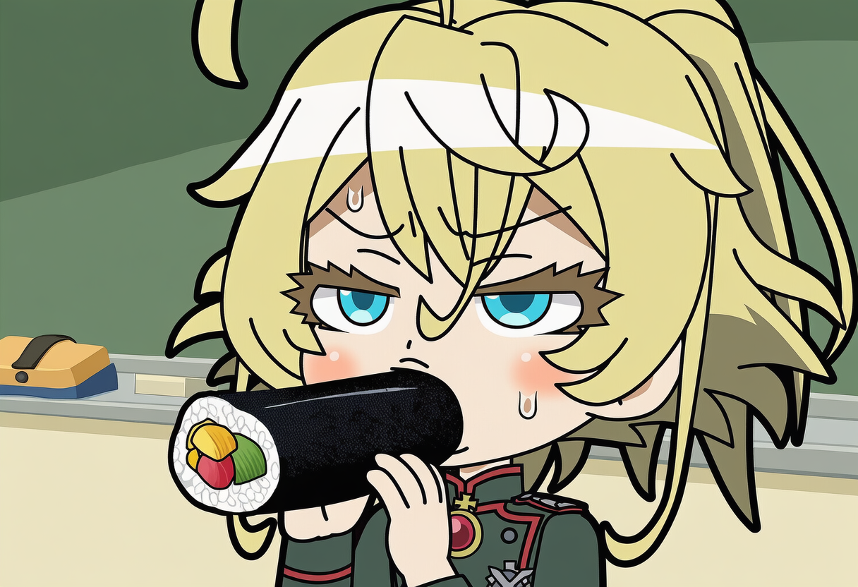 エロい顔で恵方巻きにかぶりつく幼女戦記のターニャ・デグレチャフをお願いします |