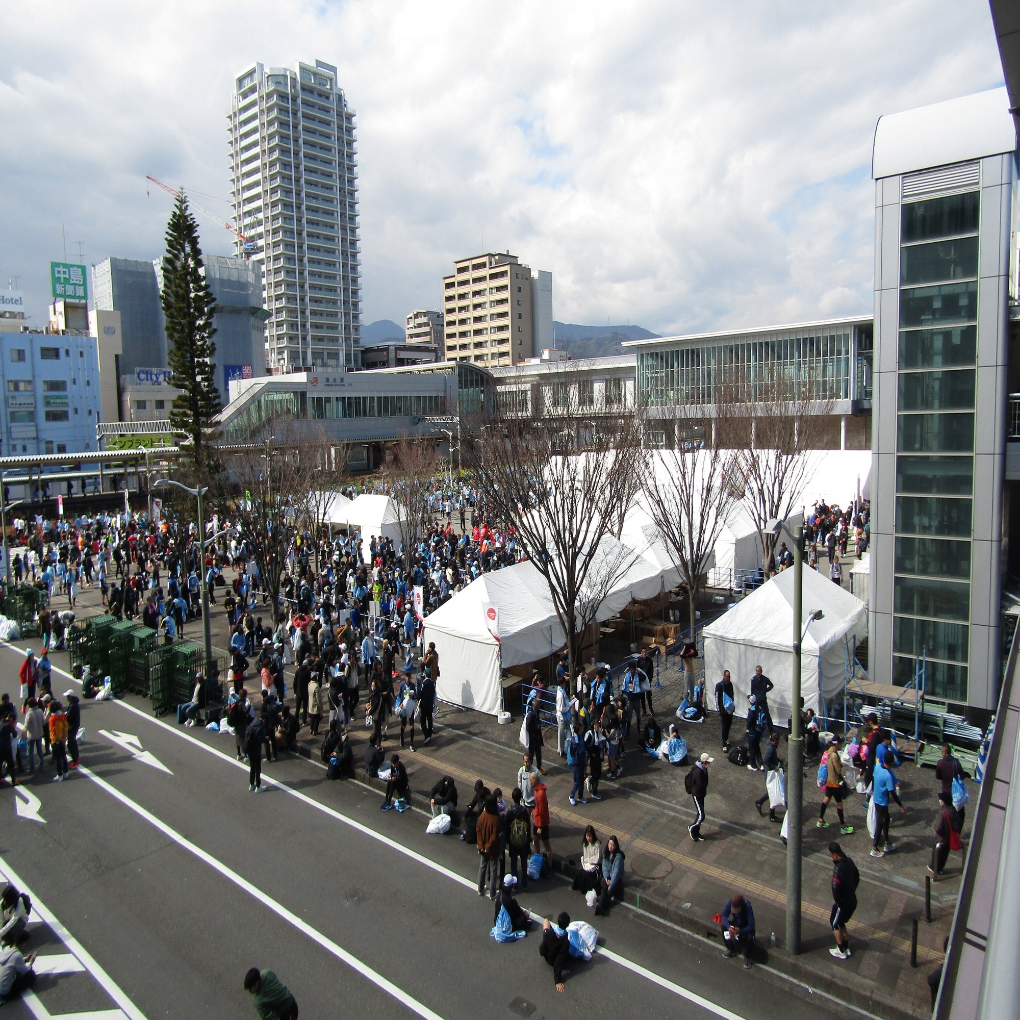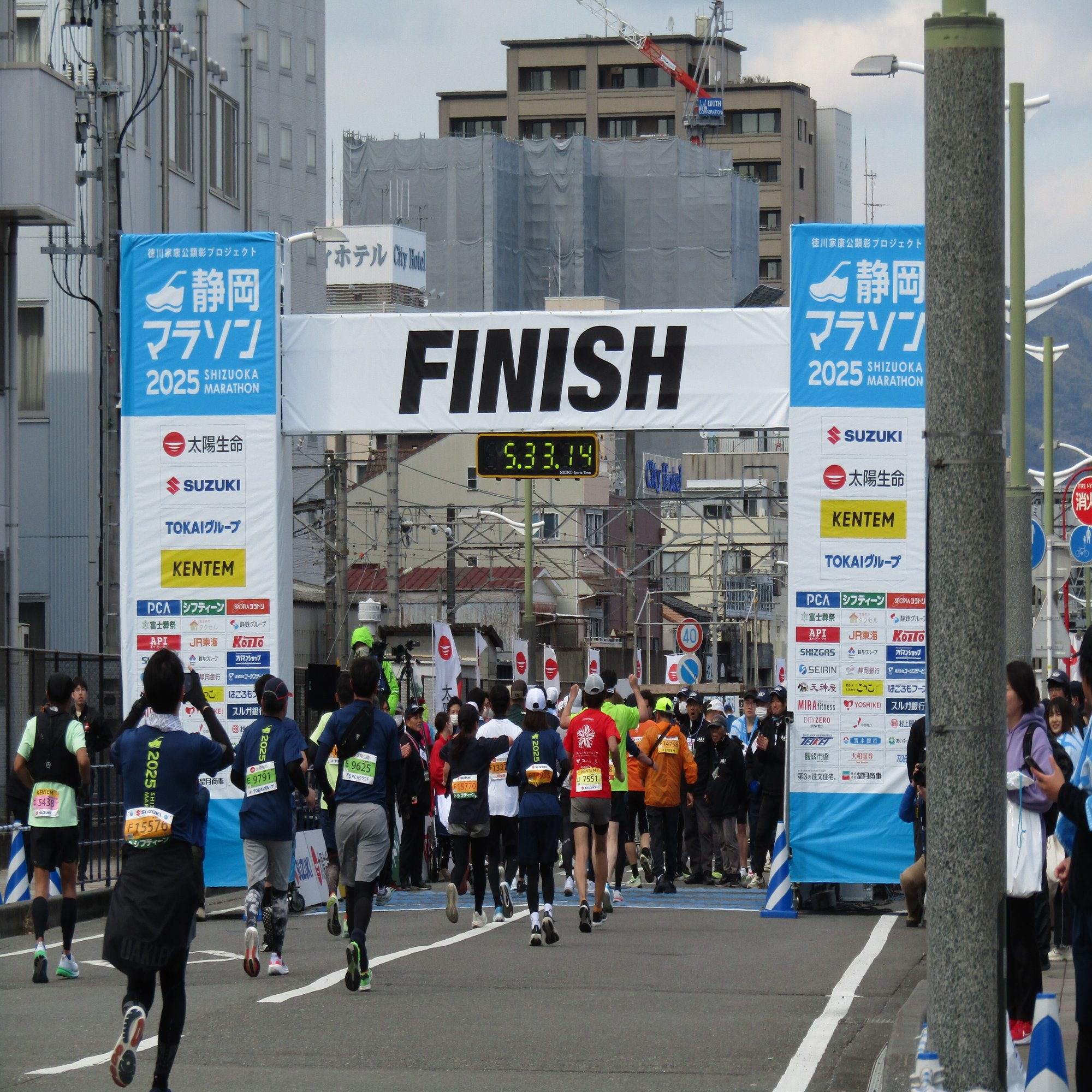 私がバスに乗って、お花見をしながらお昼を食べて、バスに乗って、電車に乗っている間も、ずっとランナーは走っていたのです。頭が下がります。私にできることはゴールゲートを撮影することぐらいです。