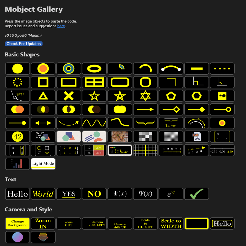 ドキュメントはチュートリアルも兼ねています。Manim CEのドキュメントにあるサンプルコードを色々試してみましょう。
