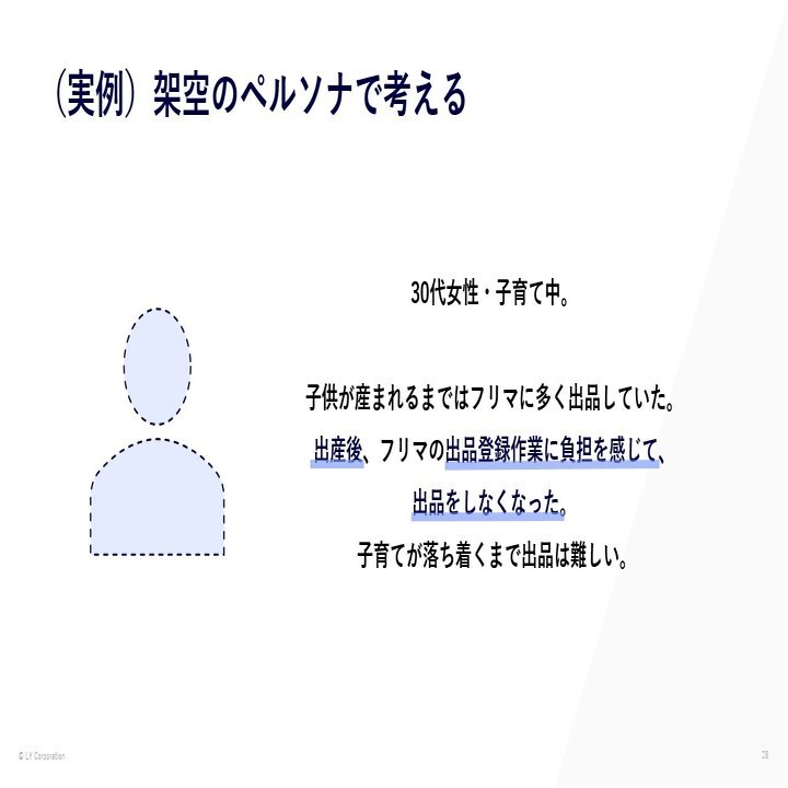 架空のペルソナは複数の価値観が混ざりやすく矛盾しがちで、チームの共通認識を持ちにくくなります。