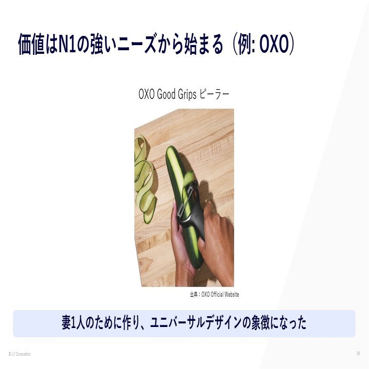 OXOは、創業者が関節炎でピーラーを持つのもつらかった「妻1人」のために開発したことが始まりと言われています(出典元)。