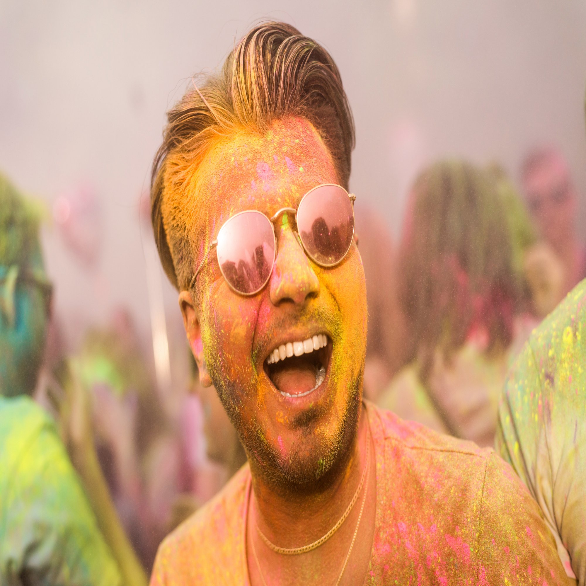 インド各地でヒンドゥー暦11月の満月の日に行われる春祭り。春の訪れを祝い、誰彼かまわず色粉を塗り、色水を掛け合う。黄色は尿、赤は地、緑は田畑を象徴するといわれている。