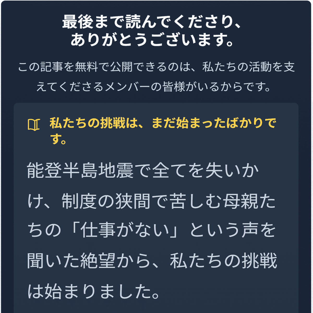 当該記事はこちら:私たちを応援していただけませんか?