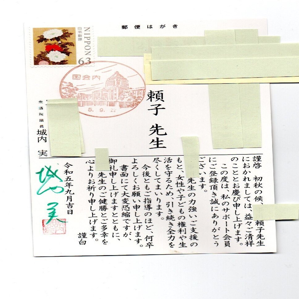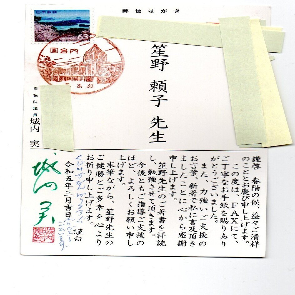 城内実大臣のお葉書から