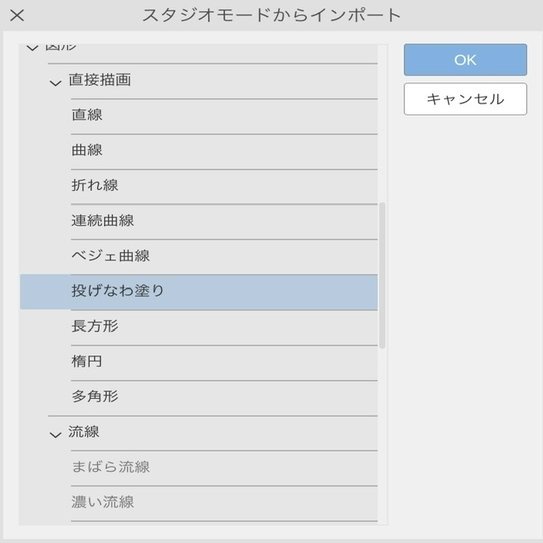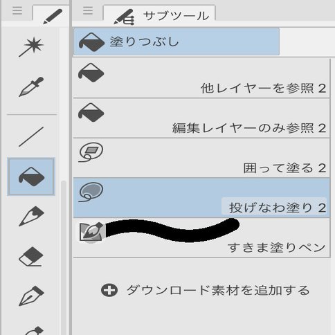 意外と見つけにくいクリスタの投げ縄塗り。