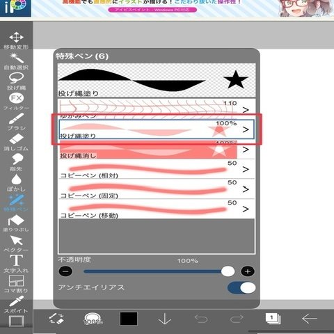 投げ縄塗り、ここにあるよ(iPad用ペイントアプリでの話)