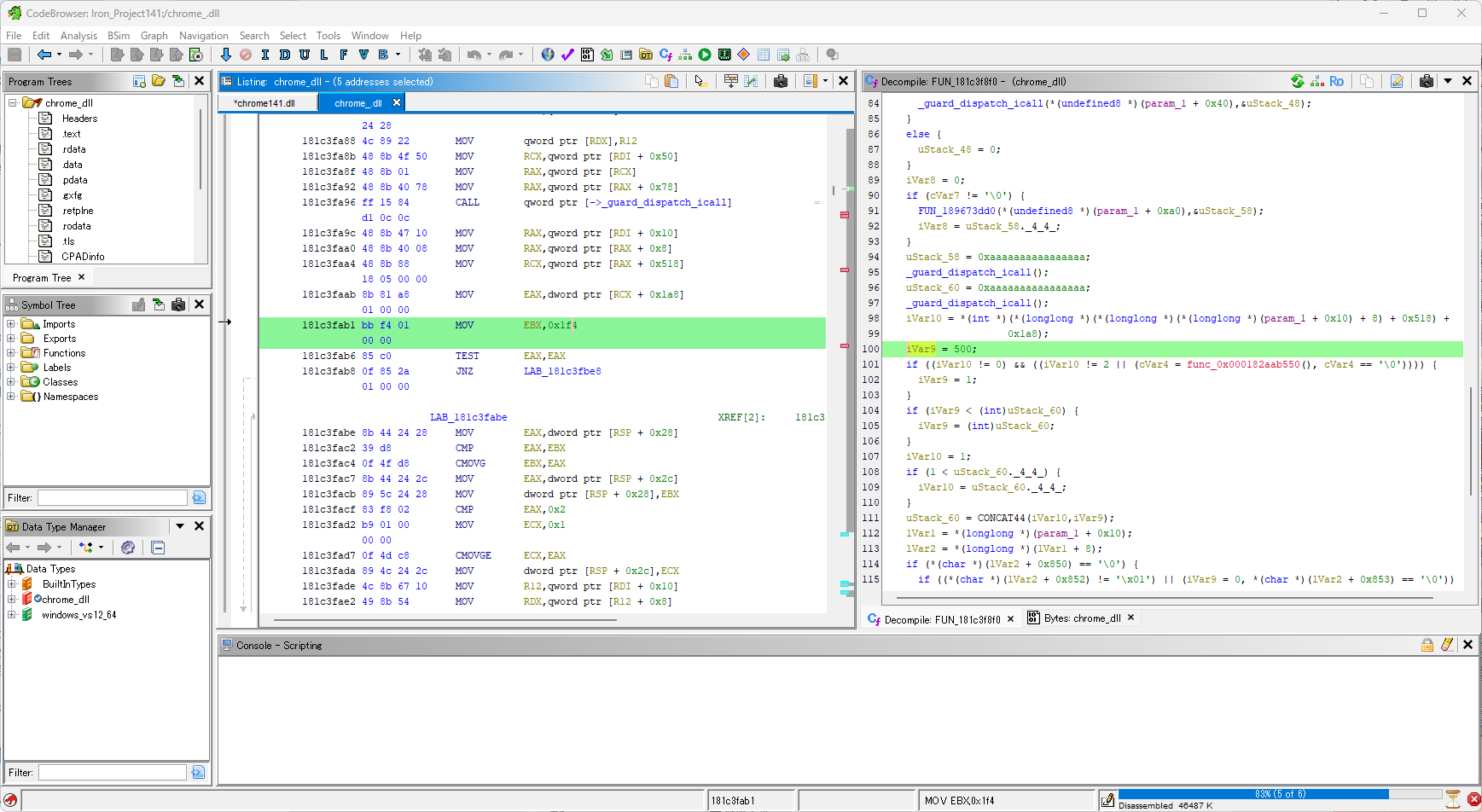 ブラウザの核となる chrome.dll などを人間が読める形に変換してくれます。