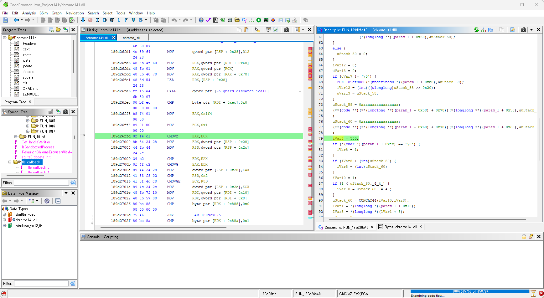 ブラウザの骨組みってそんな簡単に変えないんじゃないかという楽観的な姿勢から、改変成功箇所と同じような流れのアセンブリとデコンパイルを探すという筋で作業開始。
