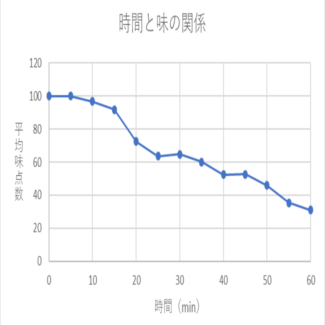 「おいしさ」というのはあくまでヒトの主観的な評価に過ぎないため、「魔法が解ける時間」を正確に求める要素としては、これだけだと心許ない。