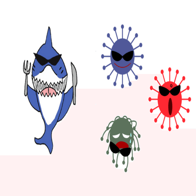 そこで、「悪いやつ」っぽくてサングラスをかけてそうな存在として「サメ」と「ばい菌」取り上げ、投稿されているフリーイラストの数をカウントしてみると……