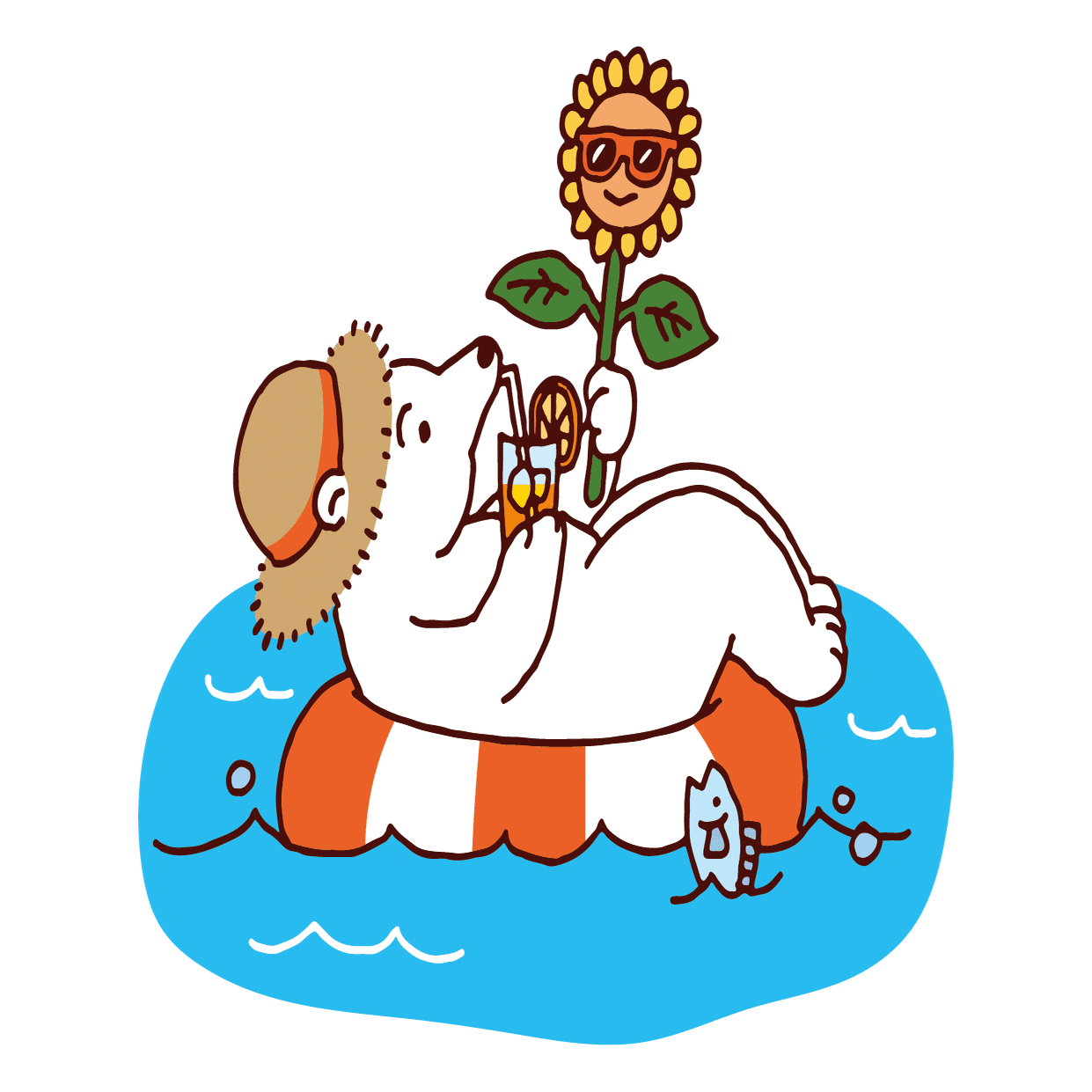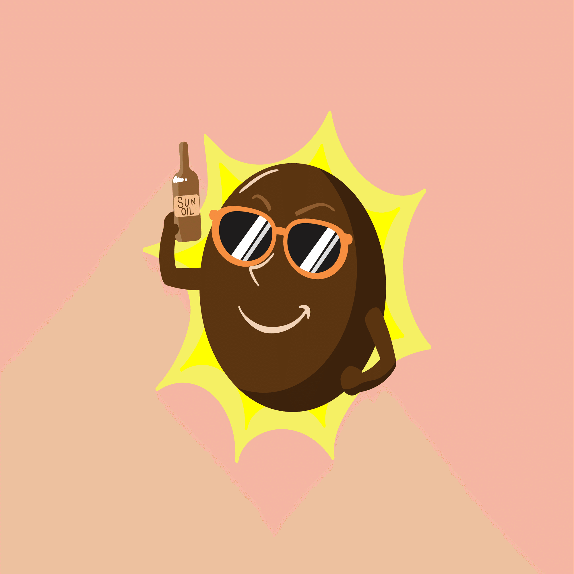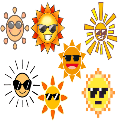 やはり、「強い光が照りつけている」イメージを表現するには、太陽にサングラスをつけさせるのが最適ということなのでしょう。