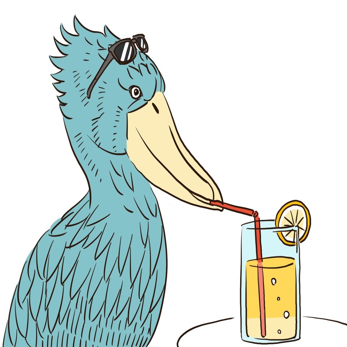 本日は、サングラスをかけたハシビロコウのイラストとともにお別れといたしましょう。