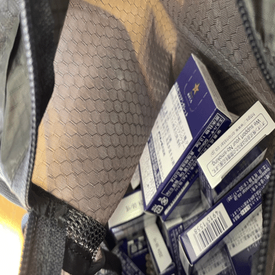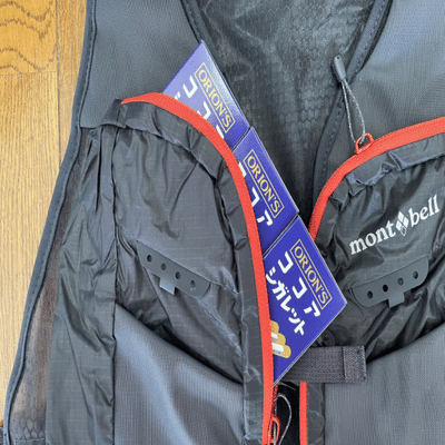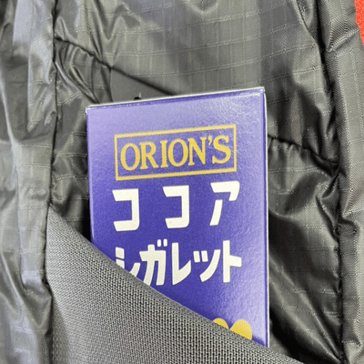 私が買ったアングラーベストはライトサイズなのですが、それでも、左右ポケットに13箱ずつ、背中ポケットに40箱で、計66箱のココアシガレットが入るのがわかりました。