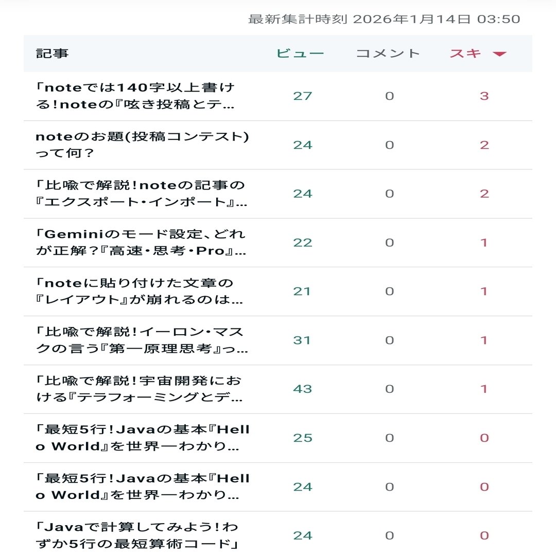 おそらく、私と同じnote始めたてのみなさんに喜んでもらえたのではないだろうか。