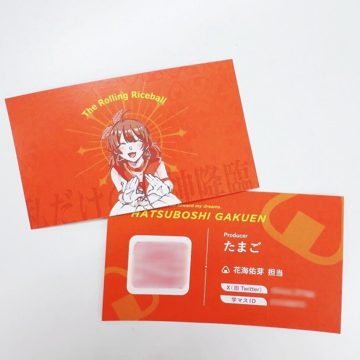 今回は、弊社の新機能「クリアトナー加工」を使って、特定のアイドルをイメージさせる【おにぎり】を忍ばせたプロデューサー名刺を作ってみました。