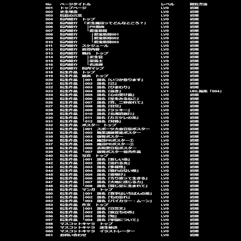 かがみの特殊少年更生施設(以下、更生施設)のサイトには、ページごとに番号とレベルが表示されているようでした。