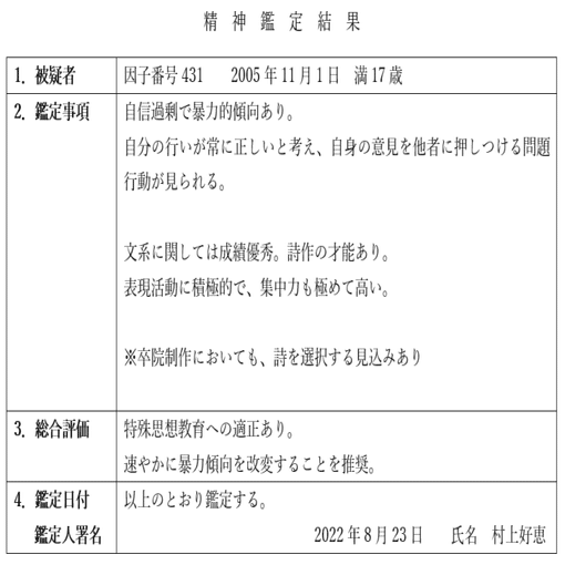◆経歴書の『第4の投影法心理テスト』という記述から【????】で検索すると「精神医療データ」がヒットする