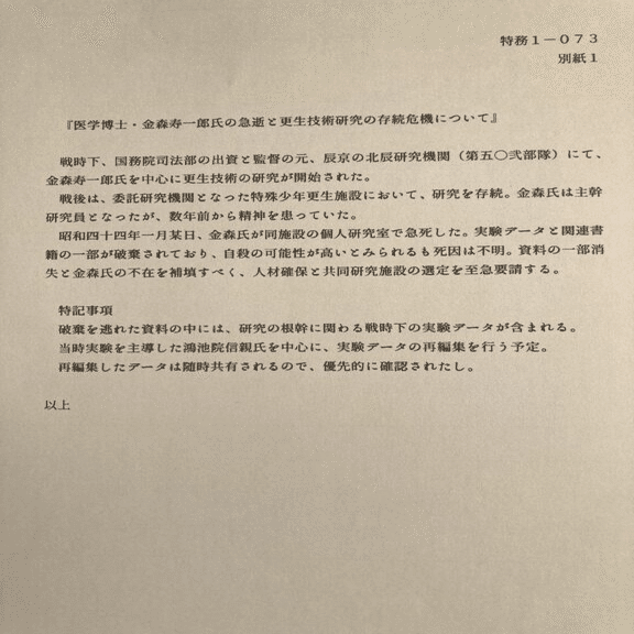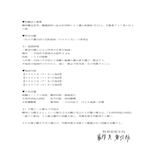岡部・小日向・高島の三名は、「社会不適合因子洗脳施術」に深く関わる人物として、他機関から派遣されました。