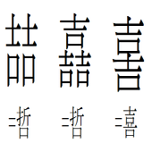 なお、吉を縦に2つ重ねると「喜」の異体字となる。