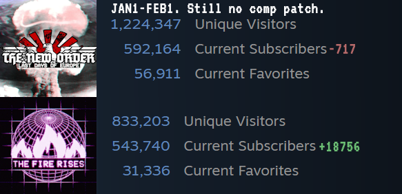 >TNO fails to release a compatibility patch as the mod enters its third month of being unplayable.