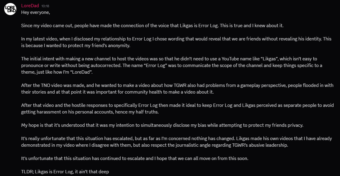 >Some YouTube drama came, went, and was redirected from TNO to GWR in under a week.