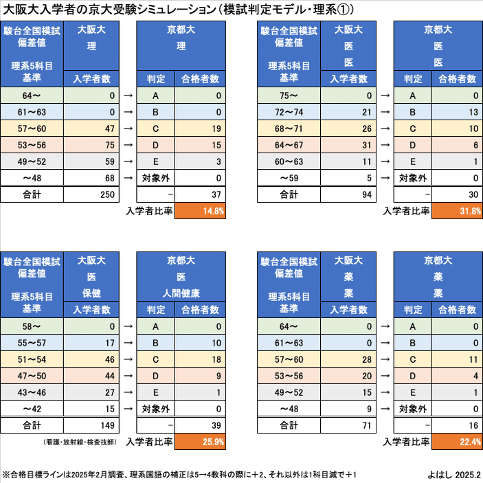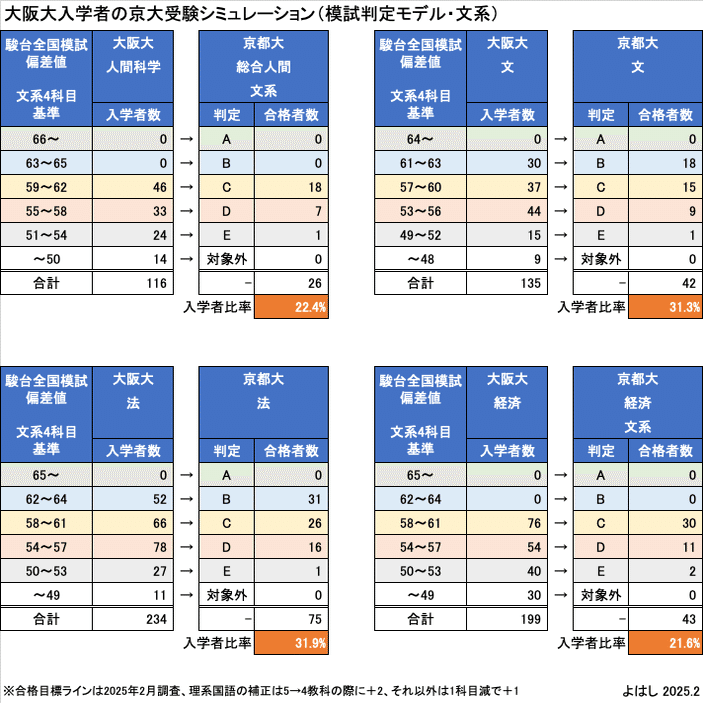 このモデルで大阪大入学者の京大受験シミュレーションを行った結果は、以下の通りです。