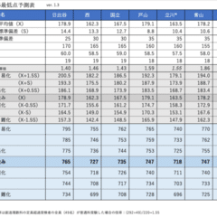 シミュレーションにあたり、いつものように科目数の補正を行っています。1科目増減で総合偏差値-1/+1(理系国語の増減は-2/+2)です。今回から受験者側(この場合は大阪大)に補正をかけています。