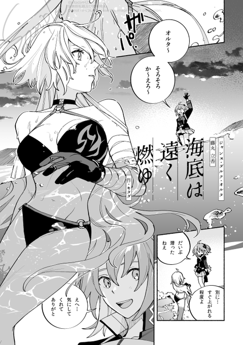 5/5スパコミにて御発行予定の旅アンソロジー『Karman line』(@Karmanline0905)に2作寄稿させていただきました! よろしくお願いいたします。 寄稿サンプル① ジャンヌ・オルタと藤丸が海沿いでお喋りする話です。(全6頁)