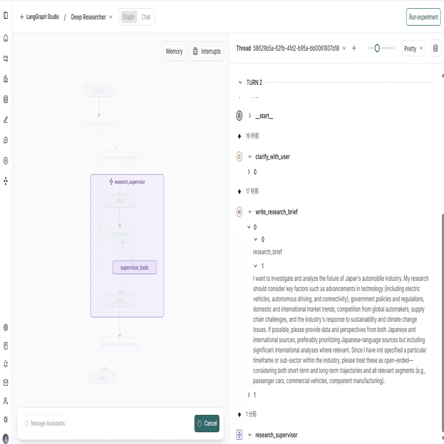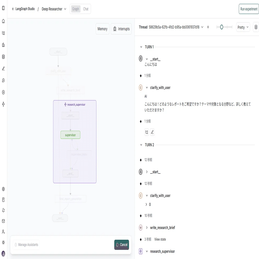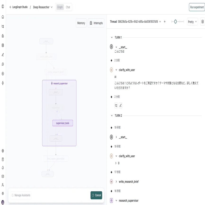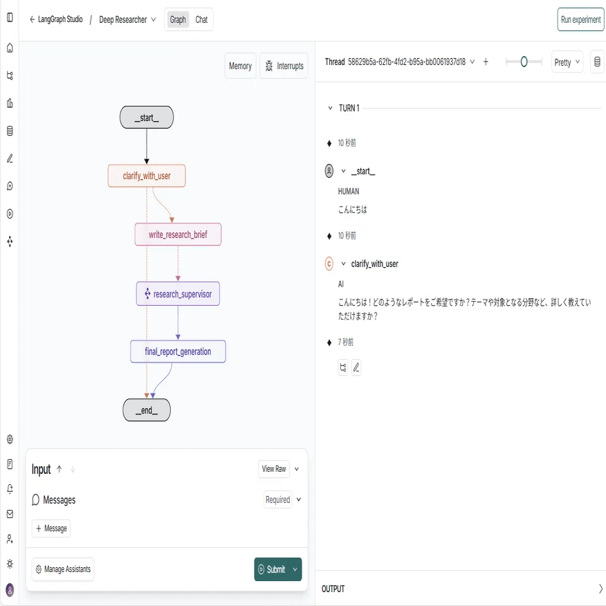 LangGraph Studioの画面から使ってみましょう。