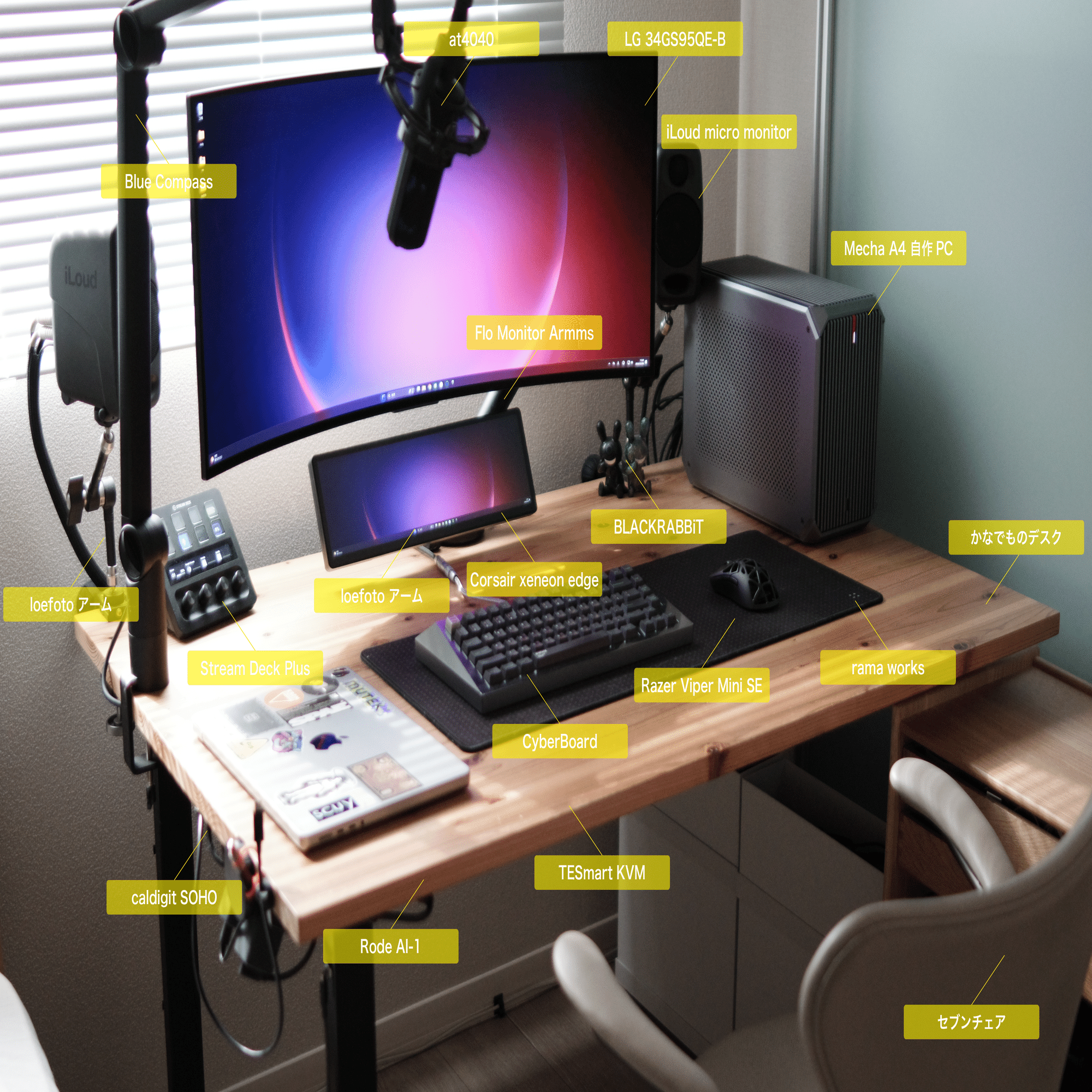 最後に、今回使った機材のデスクレシピを置いておきます。あなたのデスク構築のヒントになれば幸いです。