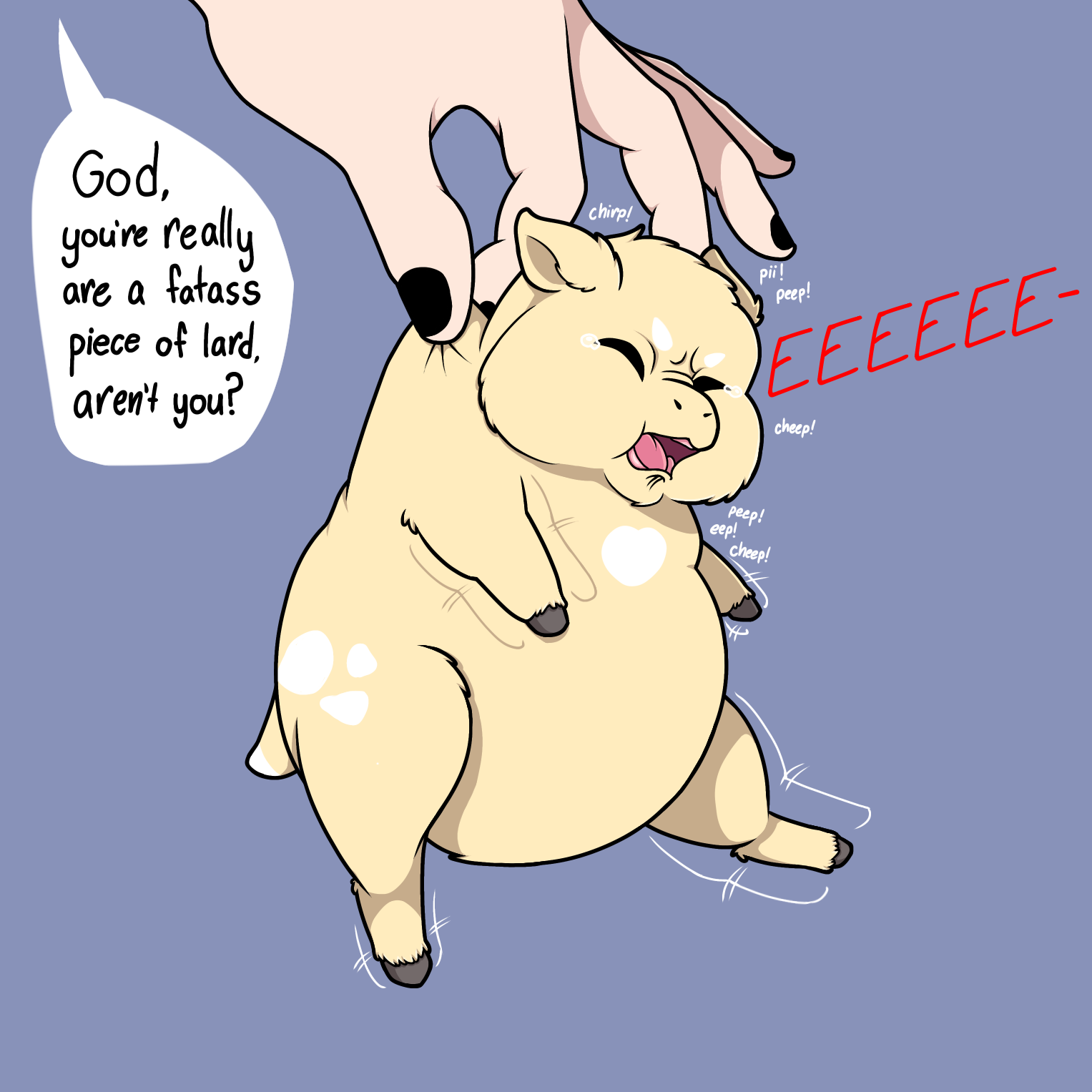 Incredibly well drawn! I’d love to see more of Buttermilk as a stress toy with lasting damage. Instead of stress toy, I’d love to see a fluffie hater misuse it violently.