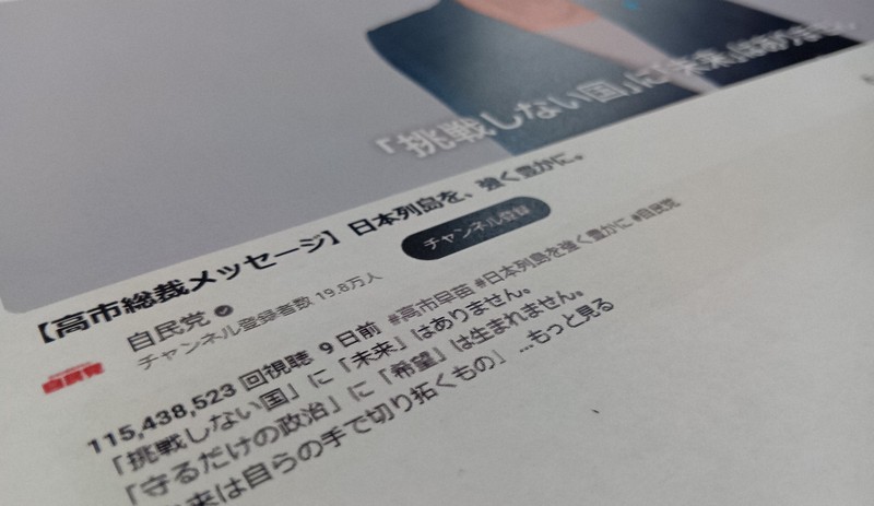 自民党は8日、高市早苗首相(自民総裁)が出演するYouTubeの動画再生回数が1億回を超えたことについて「党としても想定外であり、大変驚いている」などと見解を記したコメントを発表した。