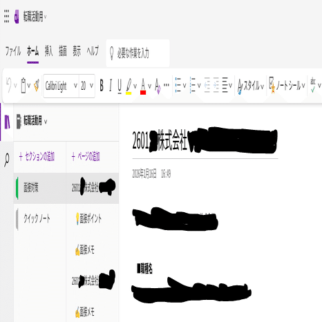 面接対策はOneNote一括管理