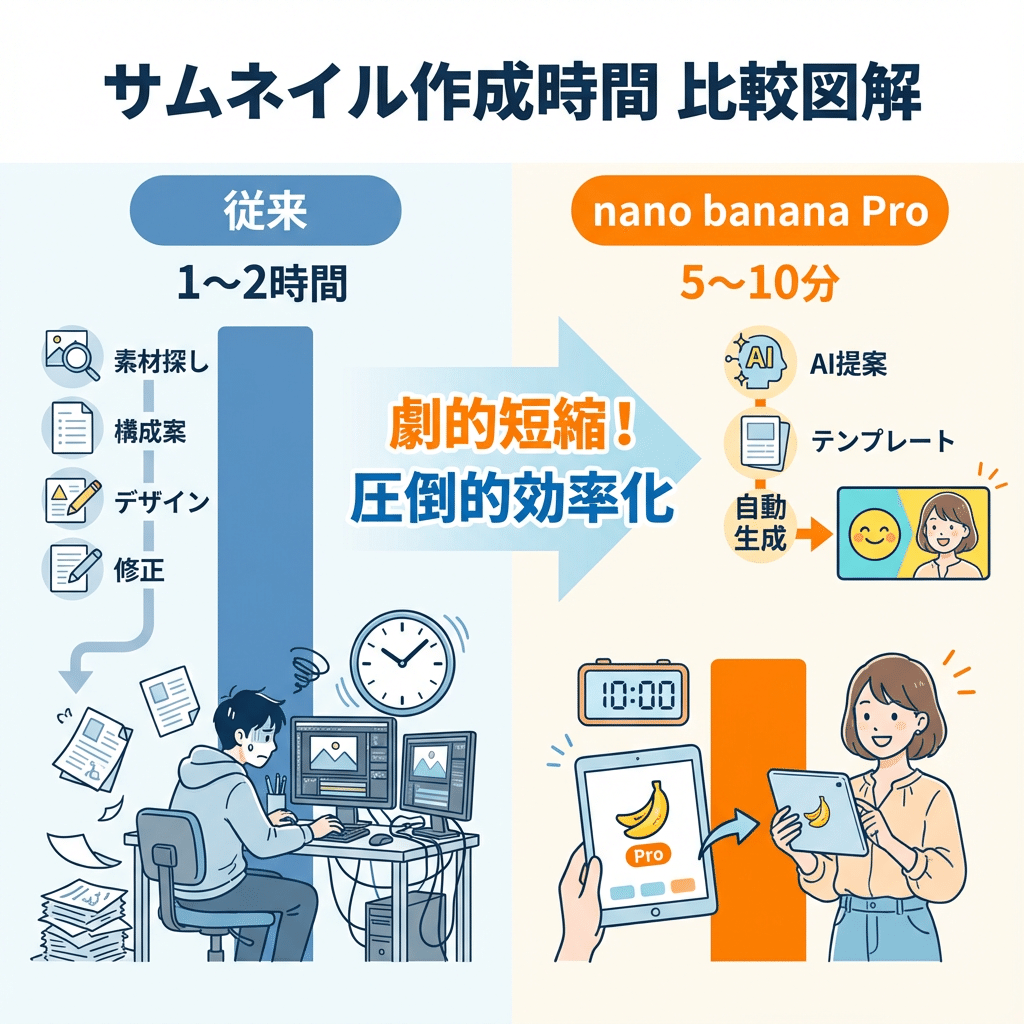 サムネイル作成に何時間もかけている時間を、動画制作やリサーチに回せる。