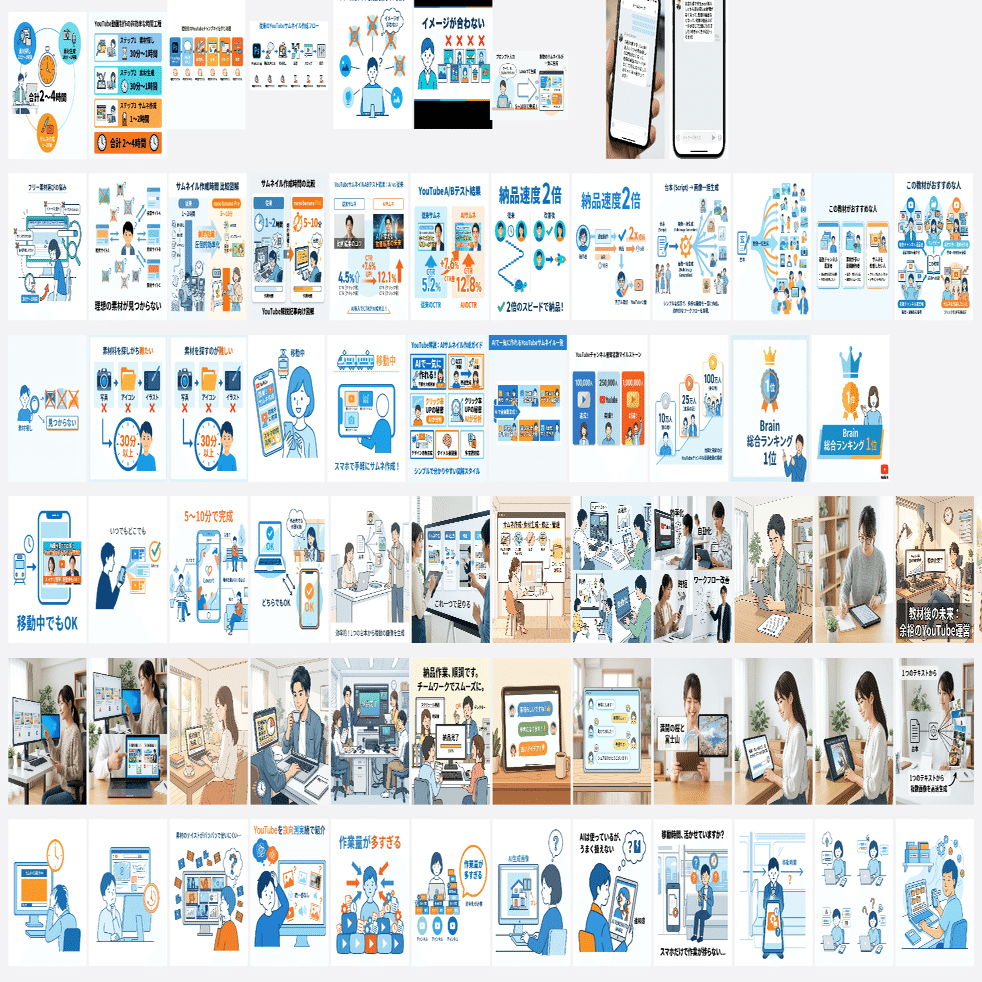 サムネ作成:プロンプト1つ入力 → 一発で何十パターンが完成(5〜10分)