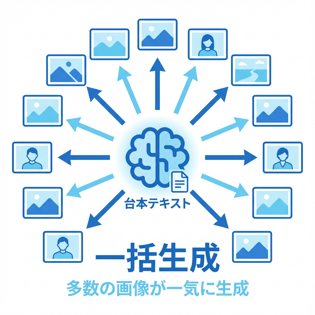 ✅ 1つの台本から画像素材を一括生成できる