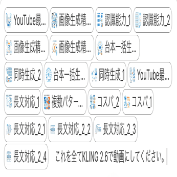 (2025年12月現在では「KLING 2.6、KLING O1、Wan 2.6」が無制限。KLING 2.6ではveo3.1やSora2のようにSEなども付与されます。)