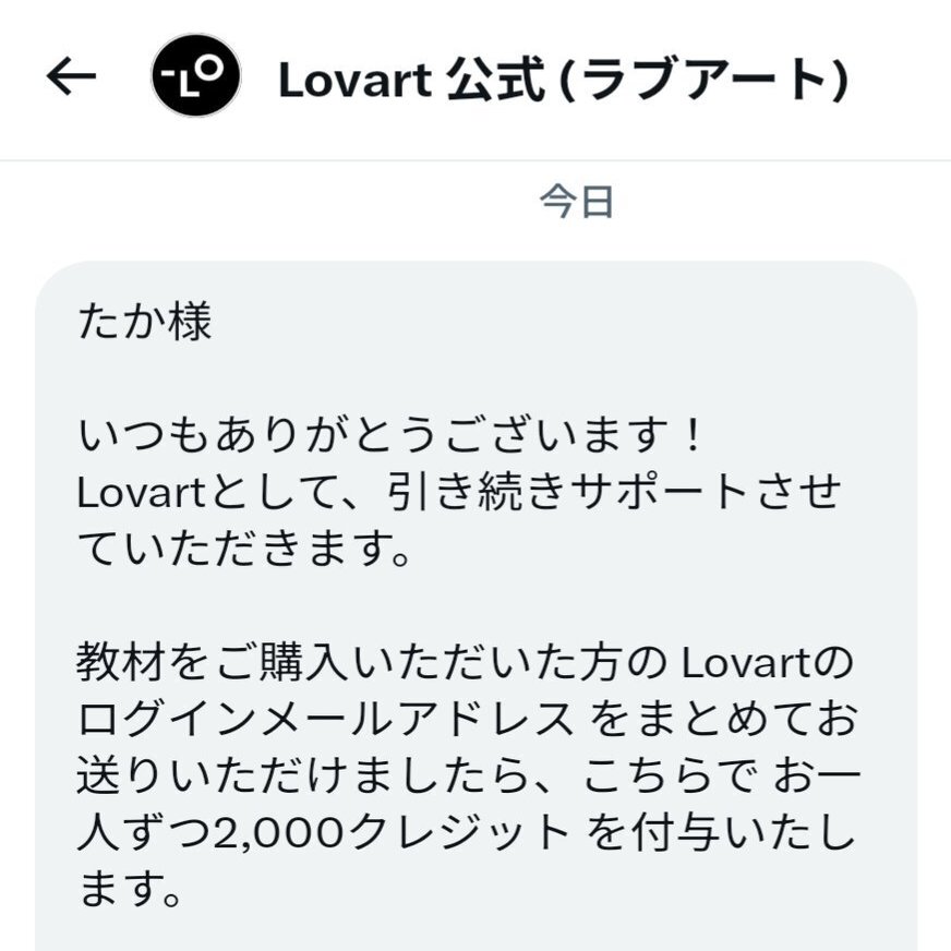 Lovartを導入してから下記のような連絡が来ています。