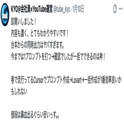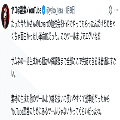 逆に言えば、Lovartのサブスクに投資できる方で、ガンガンYouTube運営を効率化したい方には必ず役立つ内容です。