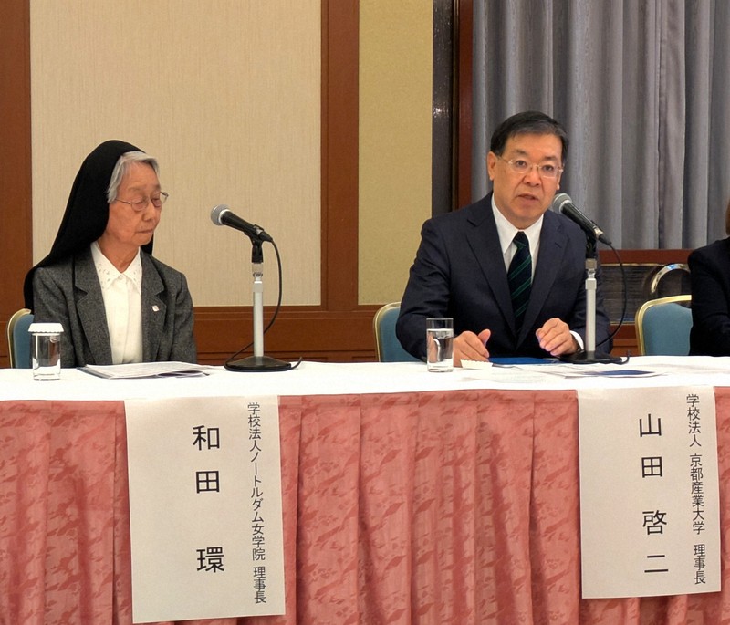 会見で山田理事長は「少子化で大学を取り巻く環境が厳しさを増す中でも前向きに、実績と歴史のあるノートルダム女子大の心理学科を引き継いで発展させたい」、和田理事長は「喜ばしく感謝しています」と述べた。山田理事長はさらに「京都という大学の街で、大学同士が手を取り合って学生の学びの環境を守りにいくモデルケースになることも期待している」と語った。【太田裕之】