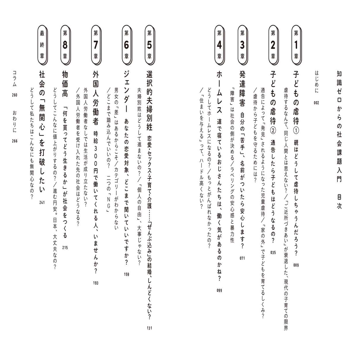 子どもの虐待、発達障害、ホームレス、選択的夫婦別姓、ジェンダー、外国人労働者、物価高。