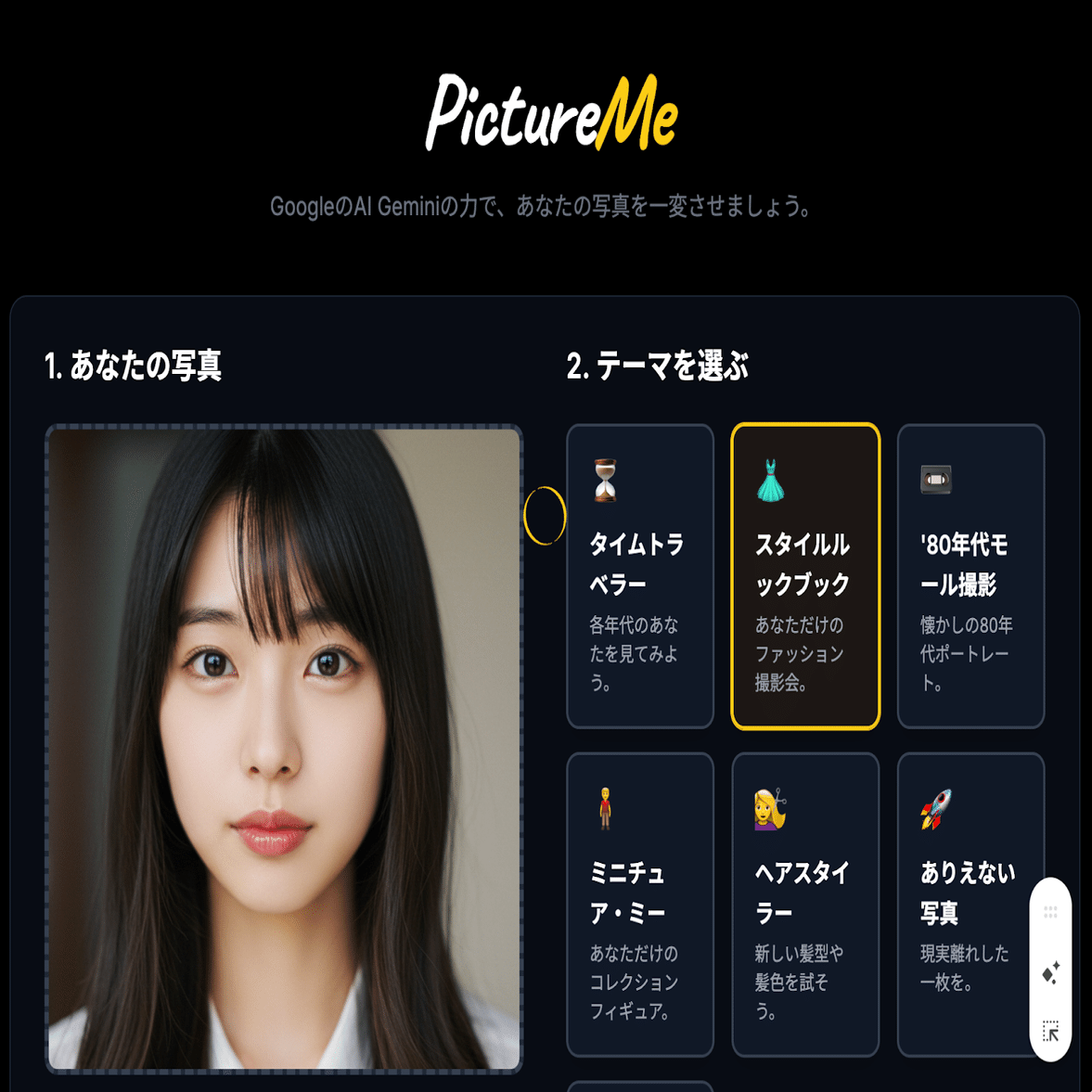 海外のユーザー投稿で流行りだした「Picture Me」のトレンド。あなたの写真をアップして、好きなテーマを選ぶだけで、いろんなスタイルに変身できます。ユーザーの投稿に inspire されて、Gemini アプリの Canvas 機能で誰でも簡単に試せるようにしたので、皆さんもぜひこちらから試してみてください。