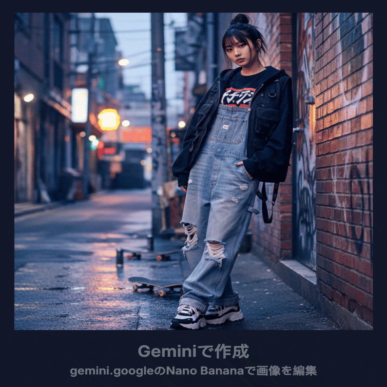例えば、ストリートファッション スタイルにしてみたり。