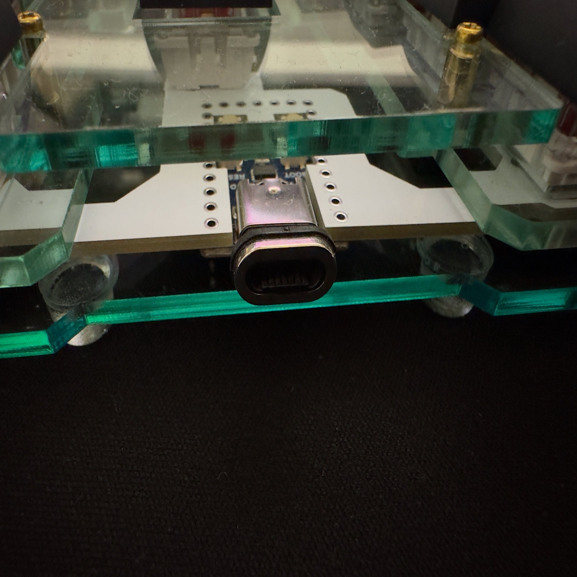 ビルドガイドの写真と照らし合わせれば回避できたのですが、アクリル板の裏表を間違えてゴム足をつけてしまいました。