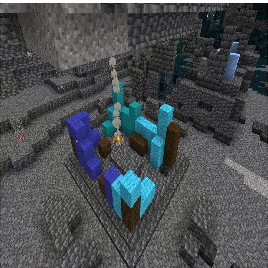 ディープダークバイオームに生成されるブロック「スカルクシュリーカー」が「スカルクセンサー」からの信号を受け取ることでウォーデンを呼び出します。