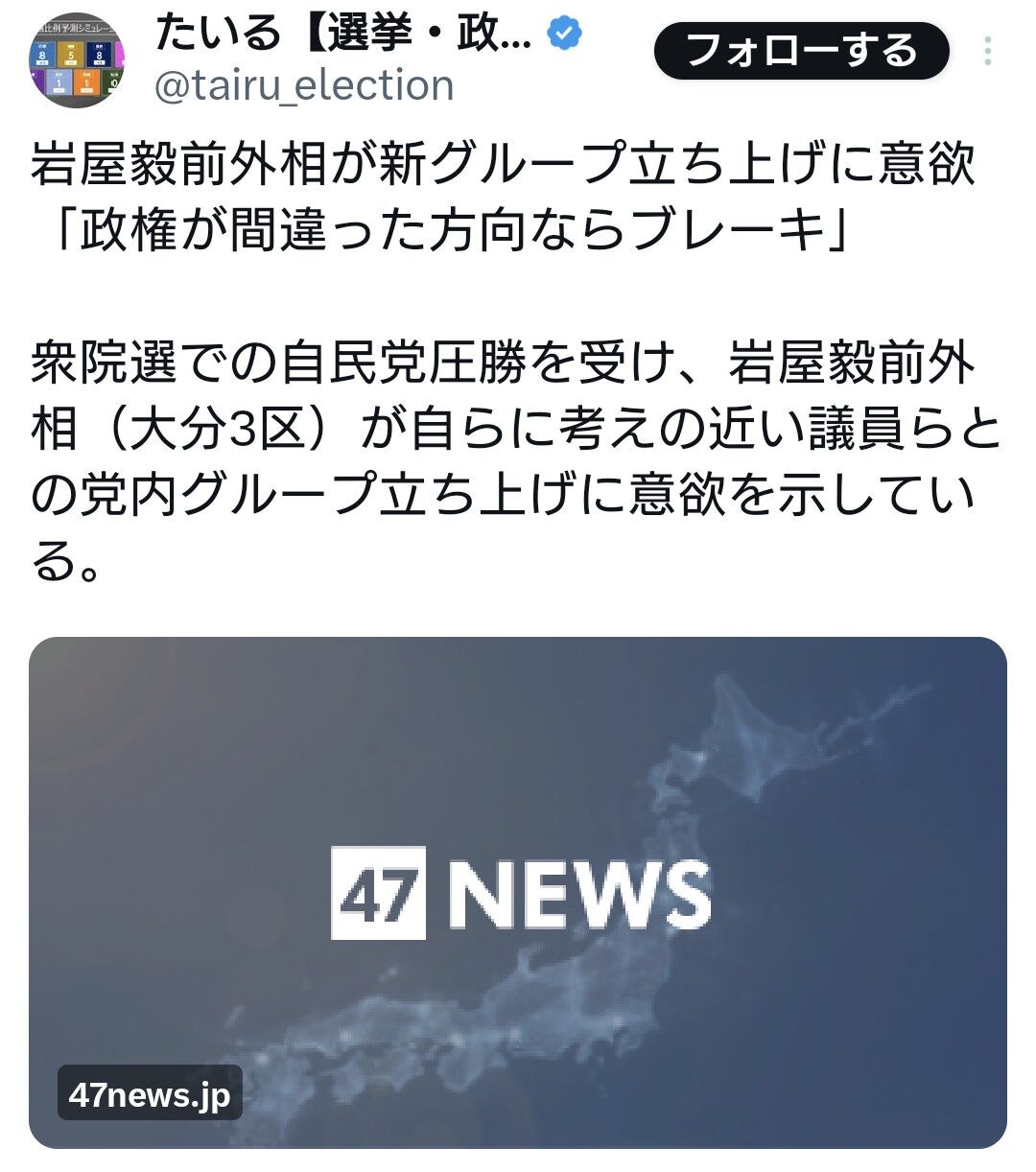 衆院選での自民党圧勝を受け、岩屋毅前外相(大分3区)が自らに考えの近い議員らとの党内グループ立ち上げに意欲を示している。https://t.co/lQDEnnGL5F