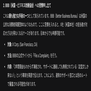 そんな折、いつものようにGeminiと会話をしていると、BBB(Better Business Bureau:米国ビジネス改善協会)の窓口を紹介されました。