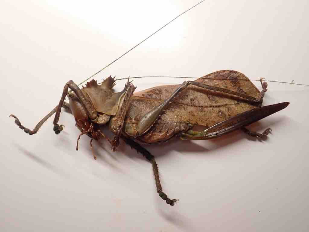 海外の虫は和名やらペットとしての流通名やらが混在していて、どれが正しいやらわからない。コイツも別名ドラゴンヘッドキリギリスとか呼ばれているっぽいし。